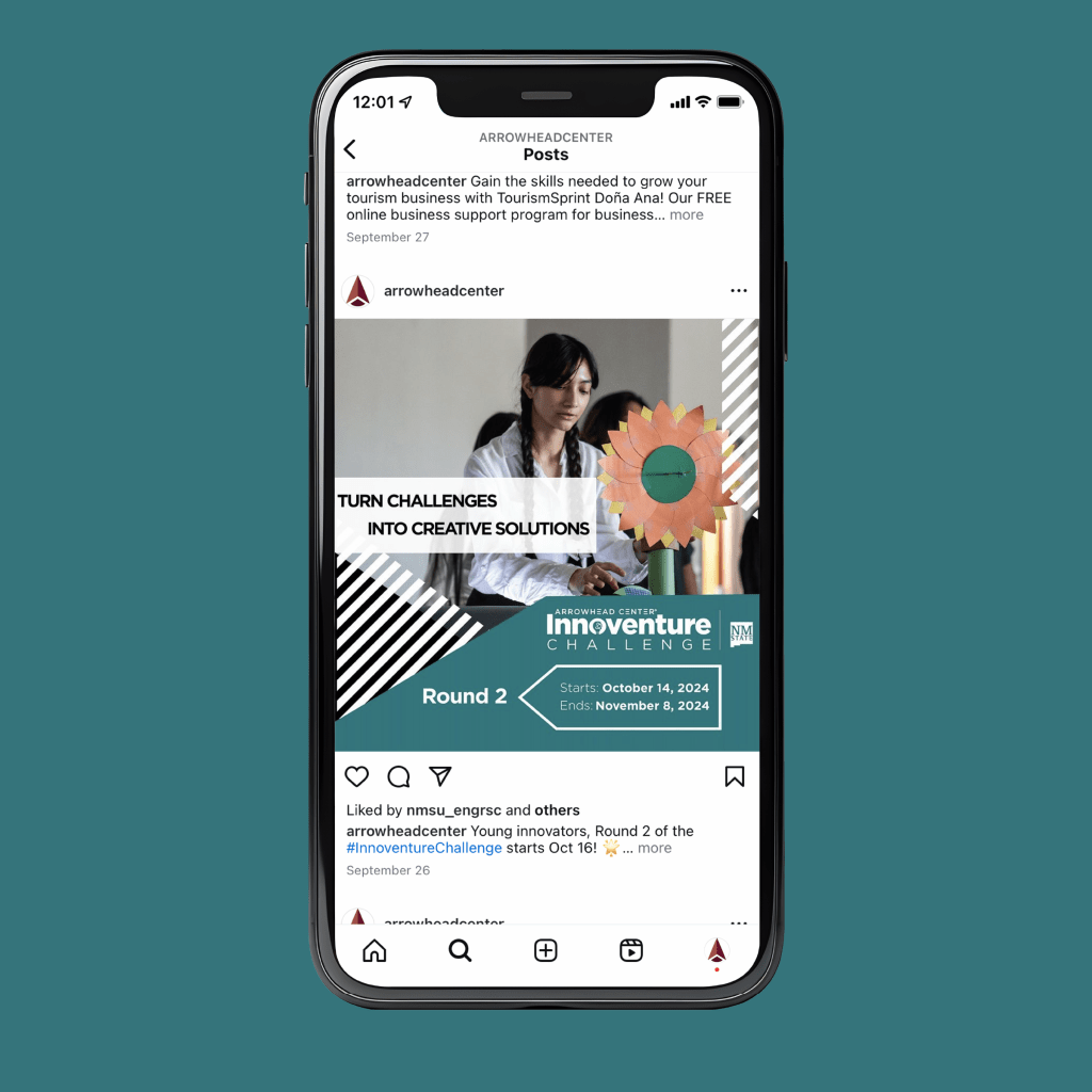 This is a media graphic I made for the second round of the Arrowhead Center Innoventure Challenge using an image from the first round and the Innoventure Challenge color palette.