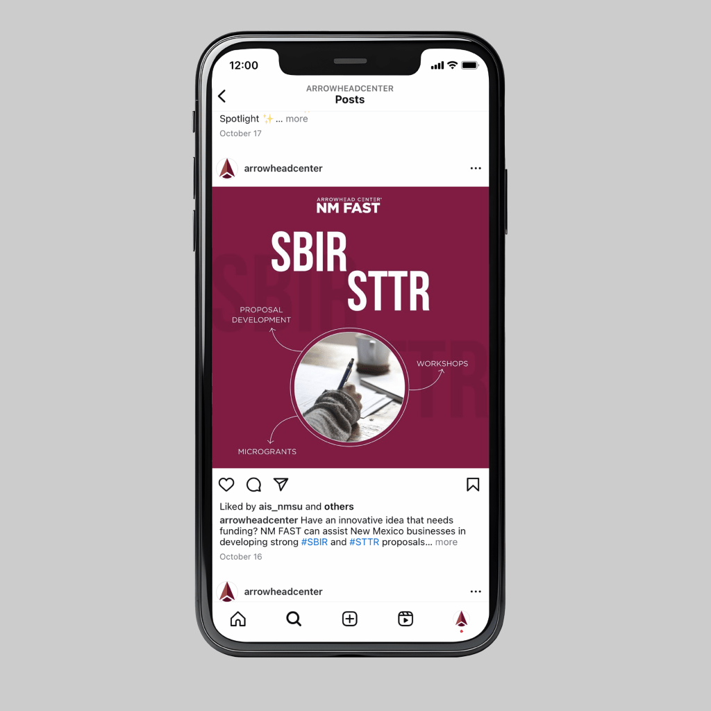 This is a media graphic I created to promote The NM Federal and State Technology (NM FAST) partnership program, focusing on the SBIR and STTR assistance that the program offers.
