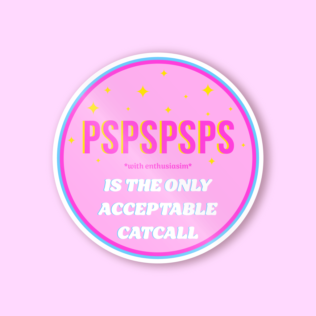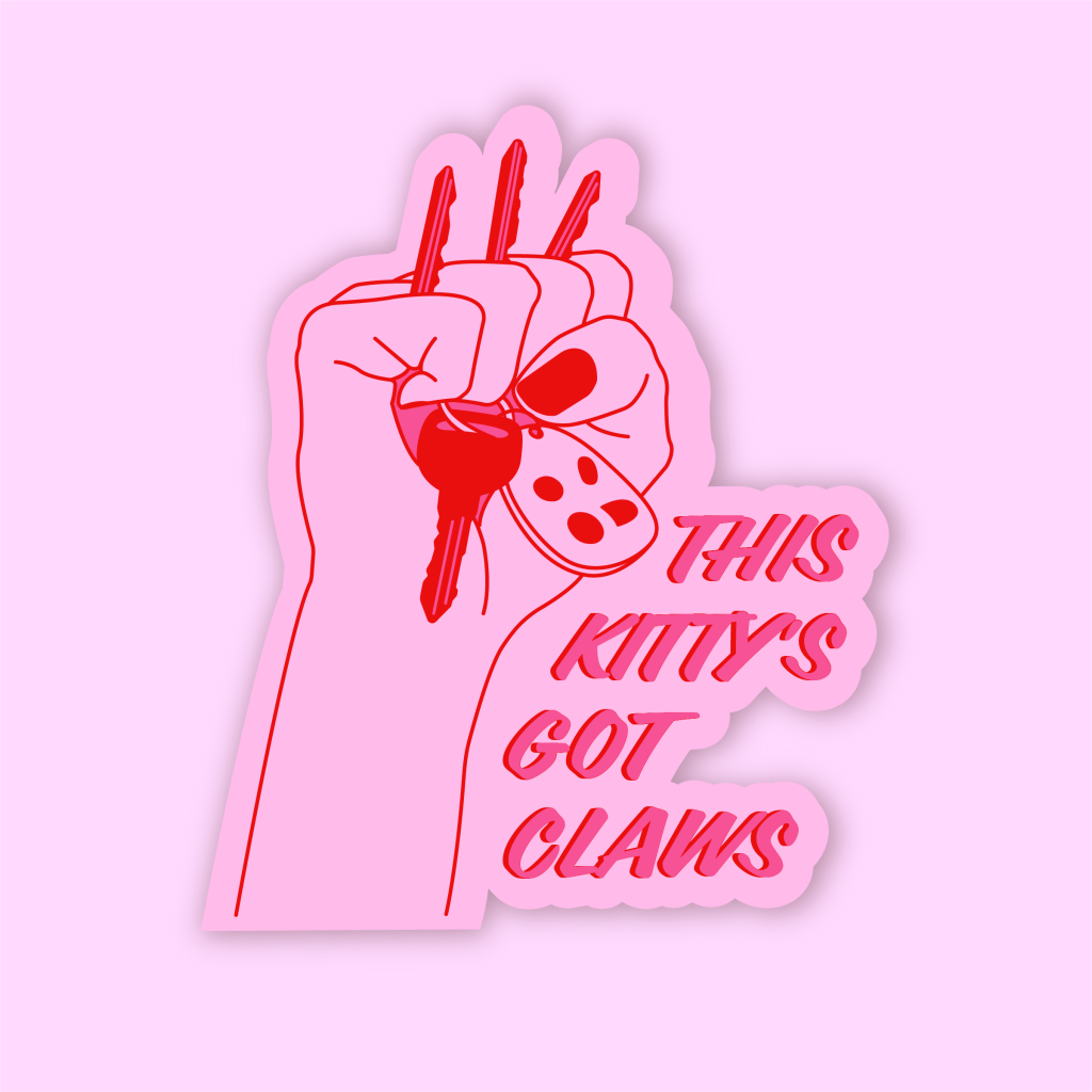 These are the three sticker designs I made for a The Hissin’ Kitten, a local feminist shop selling stickers, magnets, pins, and keychains focused on empowering women and social issues with a feminine and edgy style. These stickers were designed to align with the brand’s identity, messaging, style.